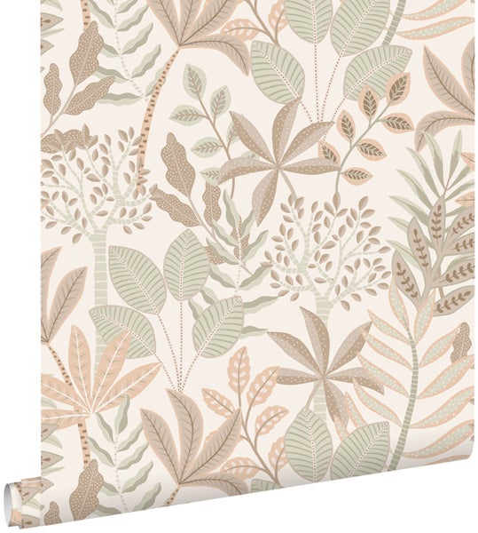 ESTAhome Tapete Blätter Grau, Beige und Graugrün 50 x 900 cm
