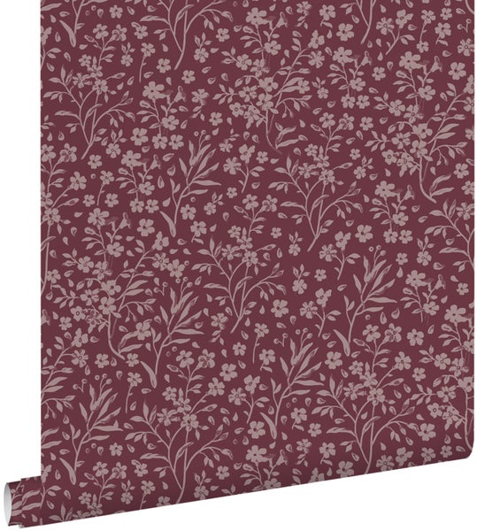 Diese schöne Tapete mit Blumen in Aubergineviolett verleiht jedem Wohnraum einen warmen Vintage-Look. Sie versprüht einen Hauch Nostalgie und lässt an vergangene Zeiten erinnern. Stilvolle Vintage Accessoires und Möbel passen perfekt zu dieser Tapete und runden den Look ab.