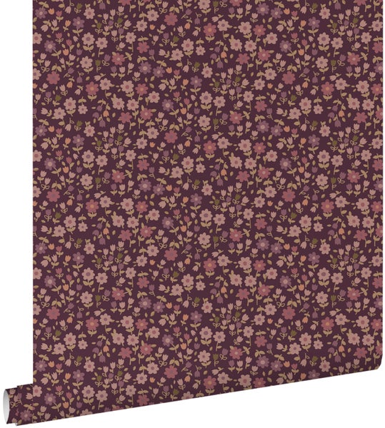 ESTAhome Tapete Blumen Aubergineviolett 50 x 900 cm