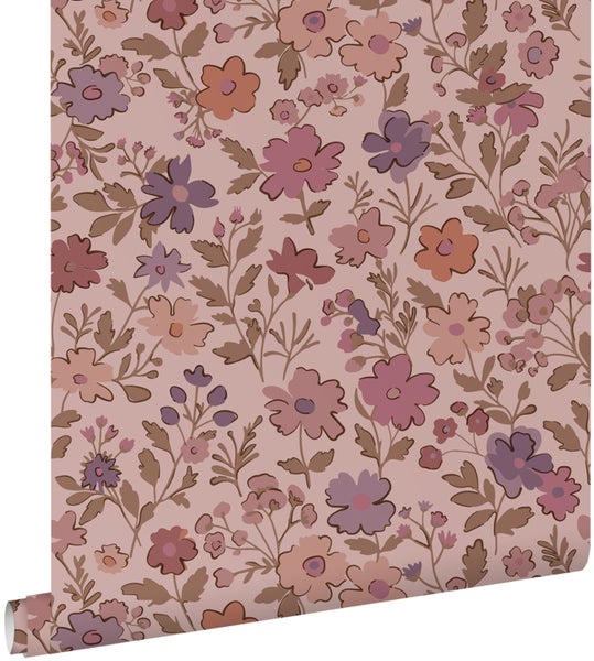 ESTAhome Tapete Blumen Dunkelviolett und Rosa 50 x 900 cm