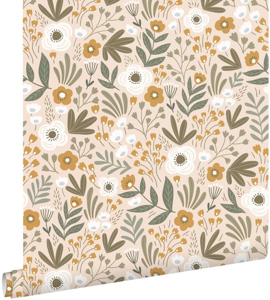 Diese trendige und fröhliche Tapete mit Blumen in Graugrün und Braun lässt jede Wand strahlen! Die Tapete kann mit vielen Farben kombiniert werden und das macht diese Tapete zu einem absoluten Must-Have.
