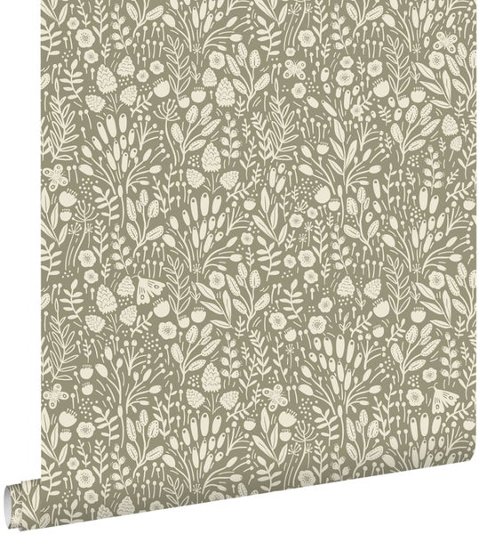 ESTAhome Tapete Blumen Hellolivgrün 50 x 900 cm