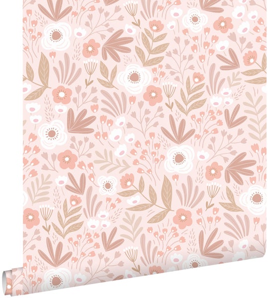 Diese trendige und fröhliche Tapete mit Blumen in Hellrosa lässt jede Wand strahlen! Die Tapete kann mit vielen Farben kombiniert werden und das macht diese Tapete zu einem absoluten Must-Have.
