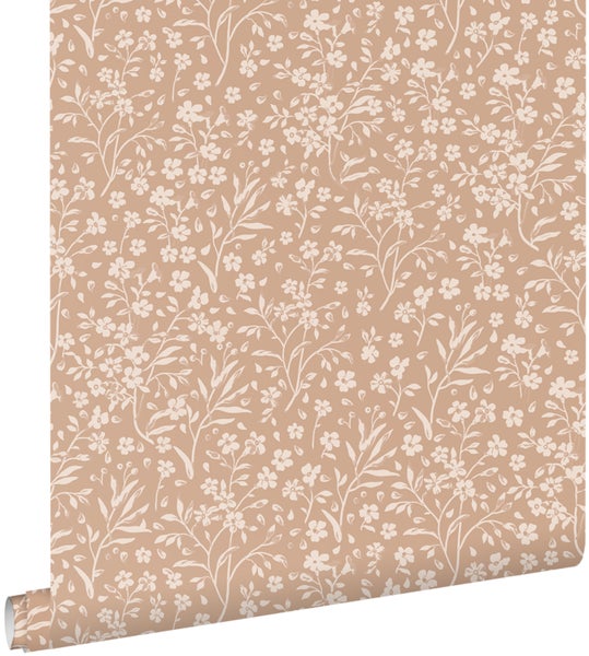 Diese schöne Tapete mit Blumen in Terrakottarosa verleiht jedem Wohnraum einen warmen Vintage-Look. Sie versprüht einen Hauch Nostalgie und lässt an vergangene Zeiten erinnern. Stilvolle Vintage Accessoires und Möbel passen perfekt zu dieser Tapete und runden den Look ab.