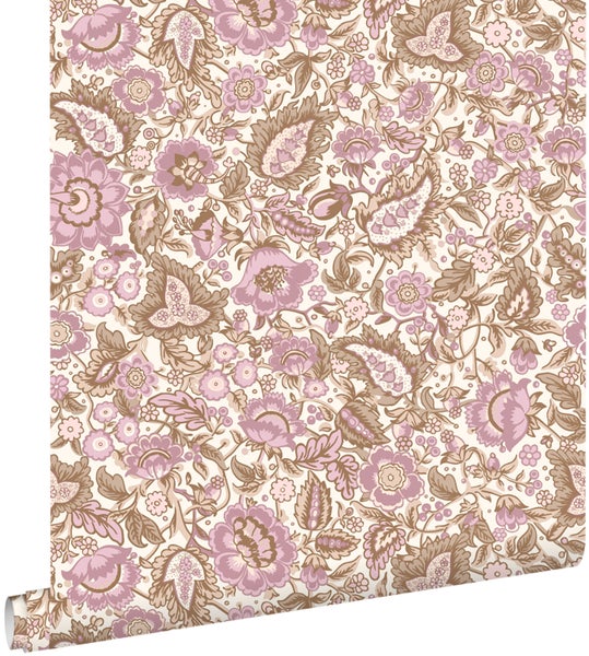 Diese schöne Tapete mit Blumenmuster in Braun und Lila verleiht jedem Wohnraum einen warmen Vintage-Look. Sie versprüht einen Hauch Nostalgie und lässt an vergangene Zeiten erinnern. Stilvolle Vintage Accessoires und Möbel passen perfekt zu dieser Tapete und runden den Look ab.