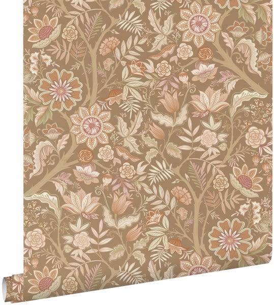 Diese schöne Tapete mit Blumenmuster in Braun und Rosa verleiht jedem Wohnraum einen warmen Vintage-Look. Sie versprüht einen Hauch Nostalgie und lässt an vergangene Zeiten erinnern. Stilvolle Vintage Accessoires und Möbel passen perfekt zu dieser Tapete und runden den Look ab.