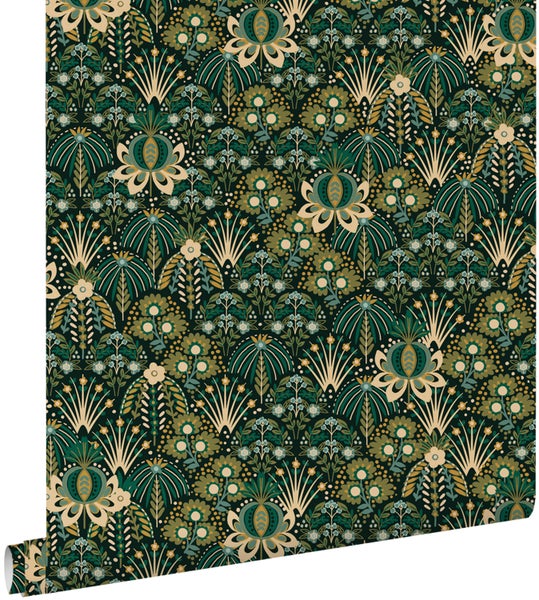 ESTAhome Tapete Blumenmuster im Jugendstil Grün 50 x 900 cm