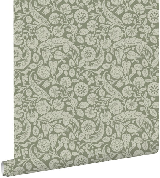 Diese schöne Tapete mit Blumenmuster in Olivgrün verleiht jedem Wohnraum einen frischen Look. Diese Tapete kann mit vielen Stilen und Farben kombiniert werden und das macht diese Tapete zu einem absoluten Must-Have.