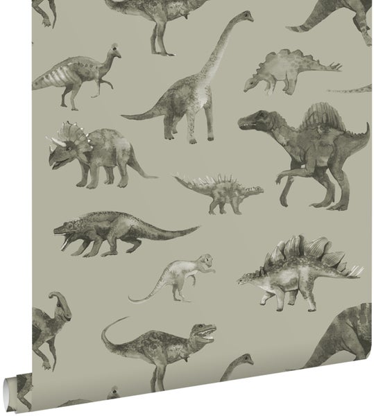 ESTAhome Tapete Dinosaurier Graugrün 50 x 900 cm