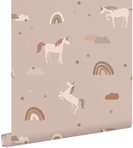 ESTAhome Tapete Einhörner Altrosa und Terrakotta 50 x 900 cm