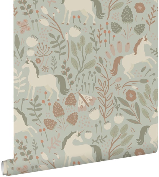 ESTAhome Tapete Einhörner Hell Graugrün 53 cm x 10.05 m