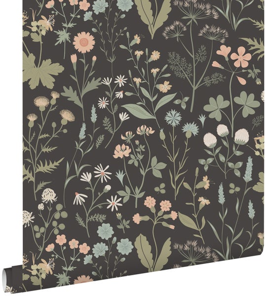 Diese schöne Tapete mit Feldblumen in Antrazitgrau verleiht jedem Wohnraum einen botanischen Look. Typisch für den botanischen Stil sind satte Grüntöne, helle und frische Farben, natürliche Materialen und vor allem richtig viel Pflanzen.
