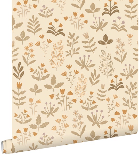 Diese trendige und fröhliche Tapete mit Feldblumen in Beige lässt jede Wand strahlen! Die Tapete kann mit vielen Farben kombiniert werden und das macht diese Tapete zu einem absoluten Must-Have.