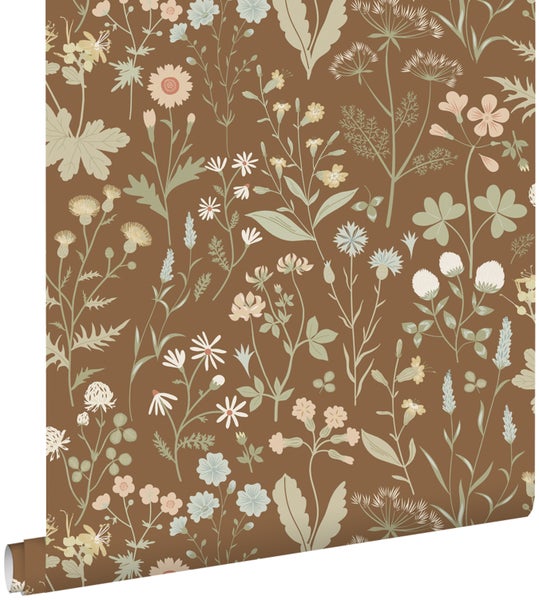 Diese schöne Tapete mit Feldblumen in Beigebraun verleiht jedem Wohnraum einen botanischen Look. Typisch für den botanischen Stil sind satte Grüntöne, helle und frische Farben, natürliche Materialen und vor allem richtig viel Pflanzen.