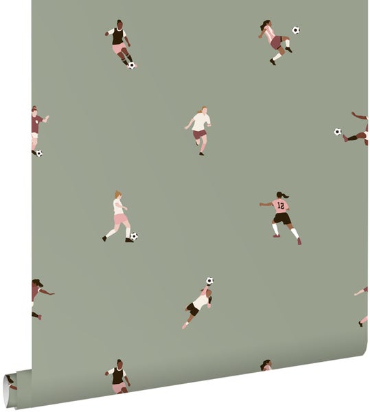 ESTAhome Tapete Fußballspielerinnen Graugrün 50 x 900 cm