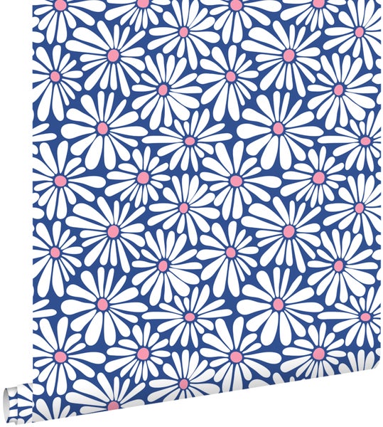 Diese trendige und fröhliche Tapete mit Gänseblümchen in Blau und Rosa lässt jede Wand strahlen! Die Tapete kann mit vielen Farben kombiniert werden und das macht diese Tapete zu einem absoluten Must-Have.