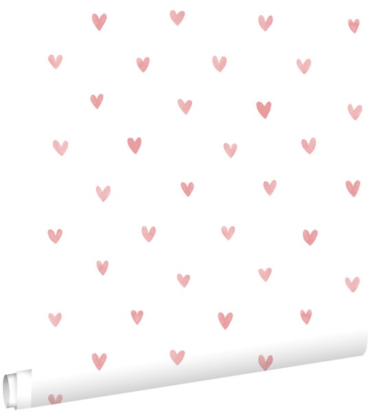ESTAhome Tapete Herzchen Weiß und Terrakottarosa 50 x 900 cm