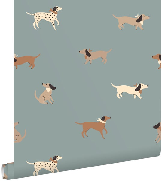 ESTAhome Tapete Hunde Blau und Braun 50 x 900 cm