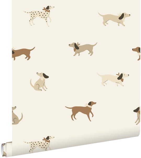 ESTAhome Tapete Hunde Weiß und Beige 50 x 900 cm
