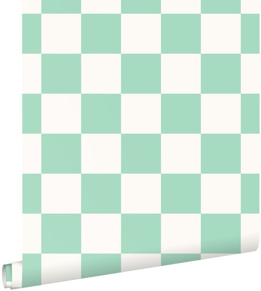 Diese lebendige Tapete mit Karomuster in Mintgrün und Weiß ist die perfekte Möglichkeit, einer Einrichtung einen verspielten und fröhlichen Touch zu verleihen.