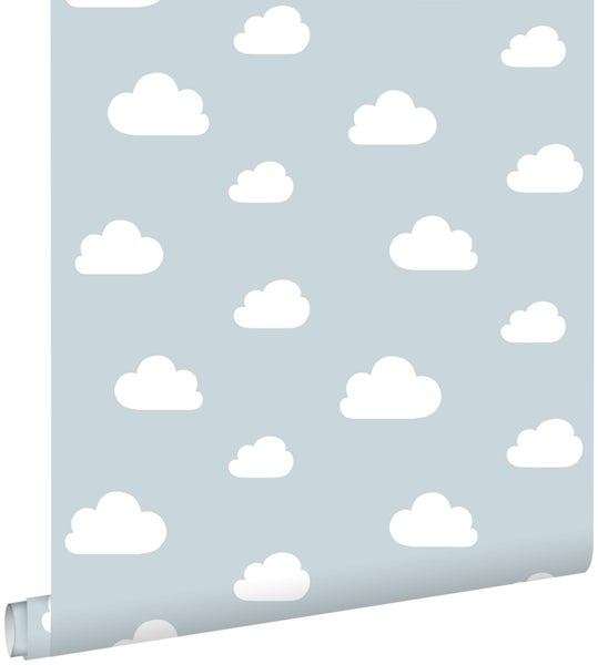 ESTAhome Tapete kleine Wolken Himmelblau 53 cm x 10.05 m