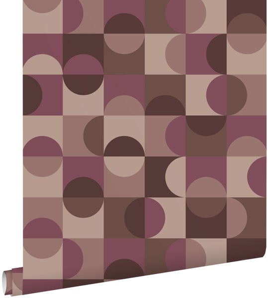 ESTAhome Tapete Kreise im Bauhaus-Stil Aubergineviolett und Braun 50 x 900 cm
