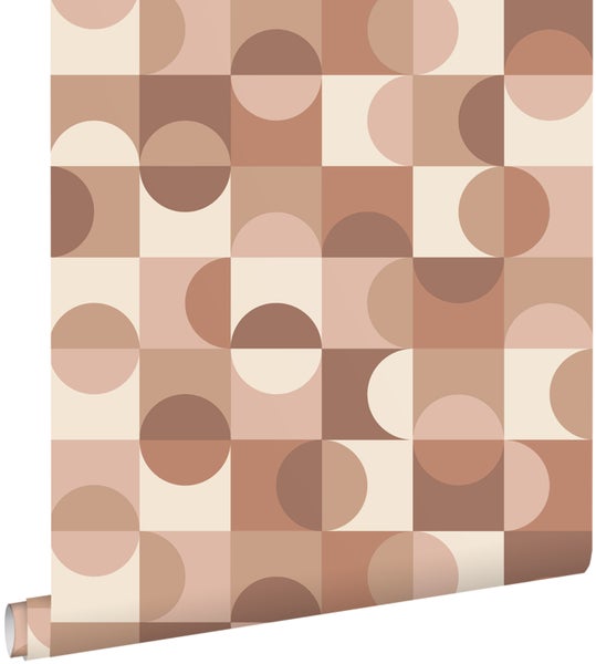 ESTAhome Tapete Kreise im Bauhaus-Stil Beige, Braun und Hellrosa 50 x 900 cm