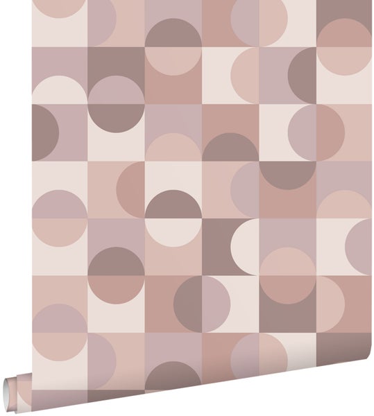 ESTAhome Tapete Kreise im Bauhaus-Stil Helllila, Rosa und Braun 50 x 900 cm