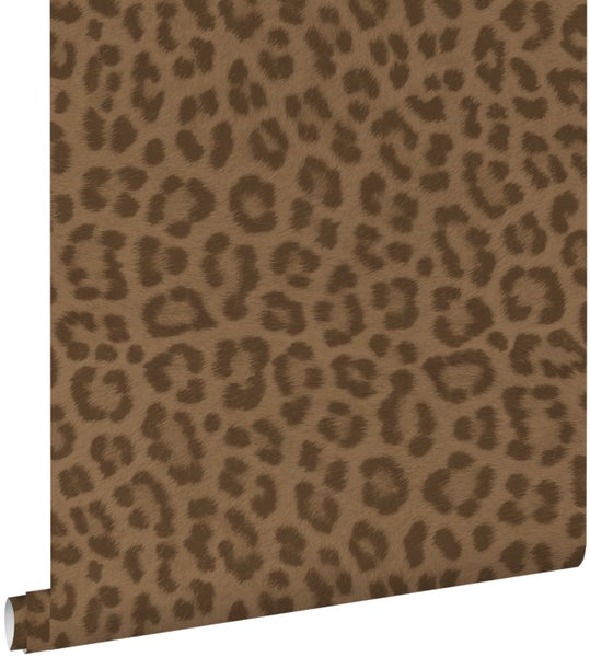 Diese stilvolle Tapete mit Leopardenmuster in Dunkelbraun gibt jedem Wohnraum einen exotischen Touch und sorgt für ein warmes und stimmungsvolles Ambiente.