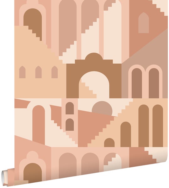 Diese schöne Tapete mit Mediterrane Häuser in Terrakottarosa sorgt in jedem Wohnraum für eine warme, stimmungsvolle Atmosphäre. Diese Tapete kann sowohl stilvoll mit dunklen, warmen Tönen als auch mit hellen Farben und Hölzern kombiniert werden. Gerade diese Kombinationen sorgen für ein harmonisches Gesamtbild.