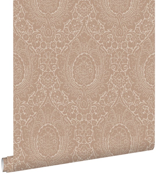 Diese schöne Tapete mit Ornamenten in Altrosa macht jede Wand zu einem echten Hingucker und passt perfekt in einen klassischen Einrichtungsstil. Diese Tapete kann sowohl stilvoll mit dunklen, warmen Tönen als auch mit hellen Farben und Hölzern kombiniert werden. Gerade diese Kombinationen sorgen für ein harmonisches Gesamtbild.