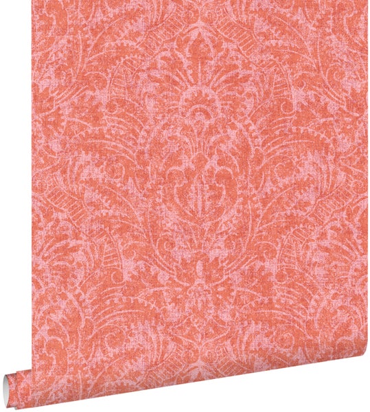 Diese stilvolle Tapete mit Ornamenten in Korallenrot hat eine schöne matte und fühlbare Oberflächenstruktur. Die Tapete passt perfekt in einen modern-klassischen Einrichtungsstil und sorgt für ein warmes und stimmungsvolles Ambiente. Diese Tapete kann sowohl stilvoll mit dunklen, warmen Tönen als auch mit hellen Farben und Hölzern kombiniert werden. Gerade diese Kombinationen sorgen für ein harmonisches Gesamtbild.