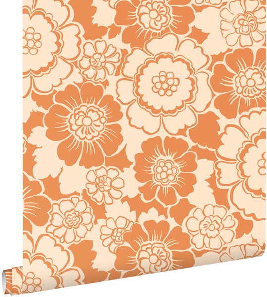 ESTAhome Tapete Retro Blumen Orange 50 x 900 cm