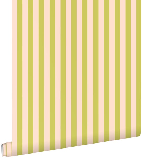 Diese trendige Tapete mit Streifen in Gelb und Grün macht jede Wand zu einem echten Hingucker und passt perfekt in einen modernen Einrichtungsstil. Diese Tapete kann sowohl stilvoll mit dunklen, warmen Tönen als auch mit hellen Farben und Hölzern kombiniert werden. Gerade diese Kombinationen sorgen für ein harmonisches Gesamtbild.