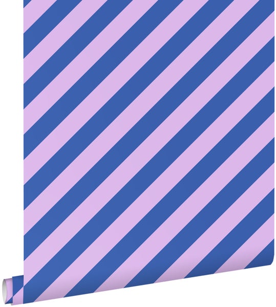 Diese lebendige Tapete mit Streifen in Violett und Königsblau ist die perfekte Möglichkeit, einer Einrichtung einen verspielten und fröhlichen Touch zu verleihen.