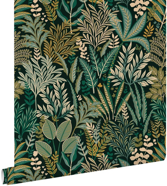 ESTAhome Tapete tropische Blätter und Blüten Grün 50 x 900 cm