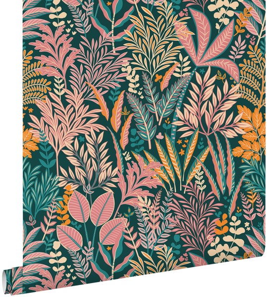 ESTAhome Tapete tropische Blätter und Blüten Mehrfarbig 50 x 900 cm
