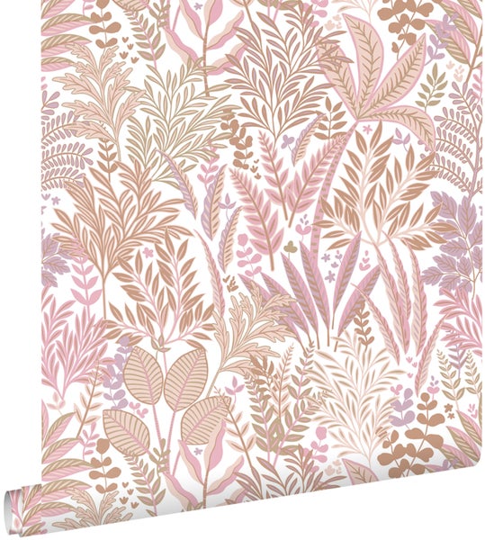 ESTAhome Tapete tropische Blätter und Blüten Rosa und Lila 50 x 900 cm