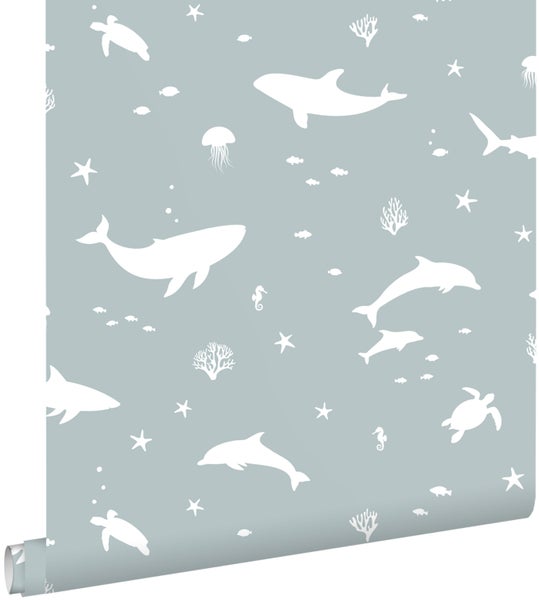 Diese fröhliche Tapete mit Unterwasserwelt-Thema in Graublau verwandelt jedes Kinderzimmer in ein wahres Abenteuerland. Kombiniert mit hellen Farben und natürlichen Materialien, entsteht eine angenehme und freundliche Atmosphäre, die zum Spielen, Toben und Lachen einlädt.