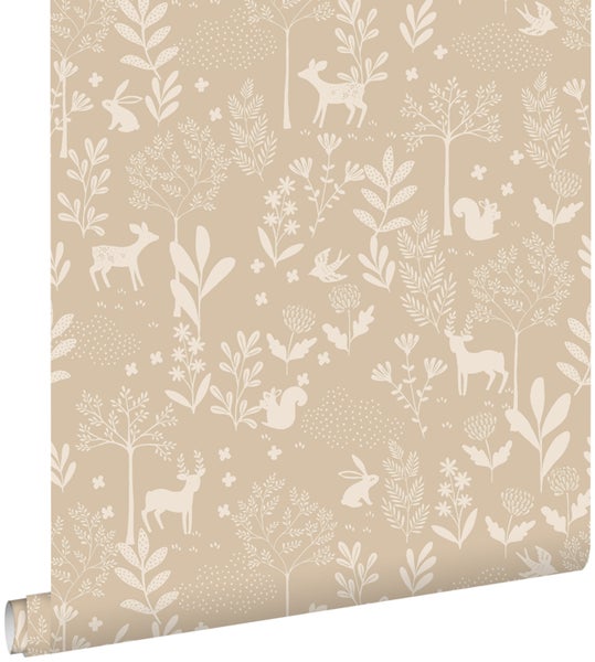 ESTAhome Tapete Wald mit Waldtieren Beigebraun 53 cm x 10.05 m