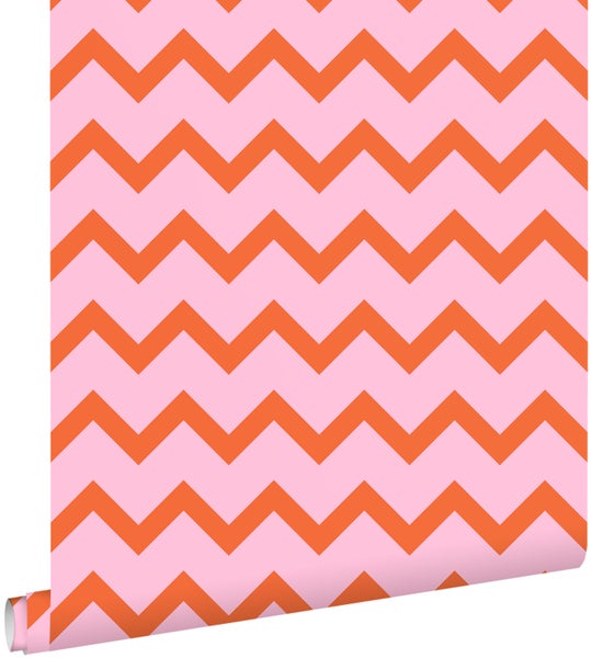 ESTAhome Tapete Zickzack-Motiv Orange und Rosa 50 x 900 cm