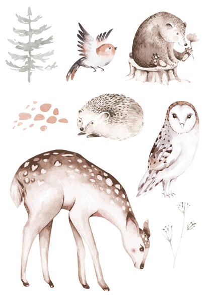 Dieser Wandstickerbogen mit Waldtieren in Braun verwandelt das Kinderzimmer in ein magisches Abenteuerland. Die Aufkleber kreieren eine angenehme und freundliche Atmosphäre, die zum Spielen, Lachen und Träumen einlädt.