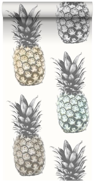 Diese schöne Tapete mit Ananassen in Beige, Mintgrün und Grau verleiht jedem Wohnraum einen frischen Look. Diese Tapete kann mit vielen Stilen und Farben kombiniert werden und das macht diese Tapete zu einem absoluten Must-Have.