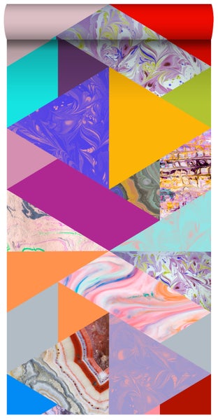 ESTAhome XXL-Vliestapete Dreiecke in Marmoroptik Gelb, Blau, Rosa und Grün 50 x 900 cm