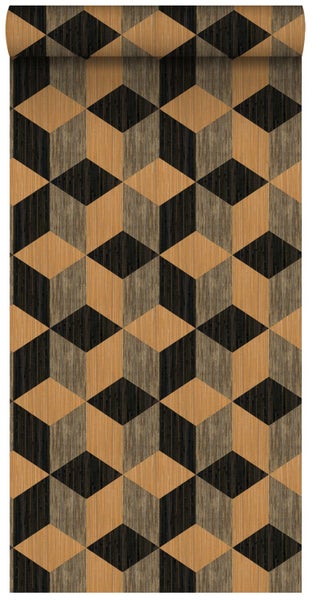 Diese bunte Tapete mit grafischem 3D Muster in Schwarz und Braun hat eine schöne matte Oberfläche und macht Ihre Wand zu einem echten Hingucker. Die dezenten Glanz-Effekte verleihen der Tapete eine edle Optik. Mit dieser Tapete geben Sie Ihrem Wohnraum ein besonderes Flair und lassen Sie eine lebendige Atmosphäre entstehen.