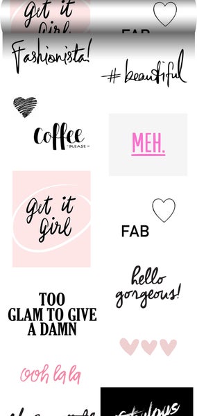 Diese schöne Tapete mit hippen Sprüchen in Schwarz, Weiß und Rosa verleiht jedem Wohnraum einen frischen Look. Diese Tapete kann mit vielen Stilen und Farben kombiniert werden und das macht diese Tapete zu einem absoluten Must-Have.