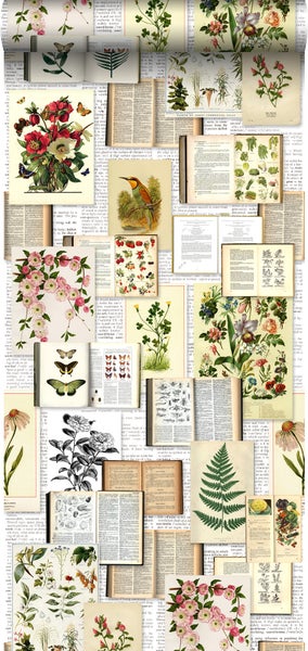 Diese schöne Tapete mit Seiten aus botanischen Büchern in Crème-Beige, Grün, Braun und Ockergelb verleiht jedem Wohnraum einen botanischen Look. Typisch für den botanischen Stil sind satte Grüntöne, helle und frische Farben, natürliche Materialen und vor allem richtig viel Pflanzen.