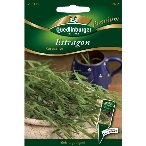 Info: Mehrjährig. Russischer Estragon (auch: Sibirischer Estragon) weist schmale, blasse und behaarte Blätter auf. Er schmeckt etwas herber, bitterer, leicht ölig, ist aber appetitanregend. Pflege: Im Freiland an einem warmen, sonnigen Standort in lockerem, humosem Boden pflanzen. Zu dicht stehende Pflanzen vereinzeln. Staunässe vermeiden. Estragon bei mehrmaligem Schnitt mit Stickstoff düngen. Standort jährlich wechseln. Verwendung: Estragon kann frisch oder getrocknet als Gewürz für Suppen und Fleischbrühen, Soßen, Salatmarinaden und für Gewürzgurken verwendet werden. Sehr gute Eignung auch für Gefrierkonservierung. Gärtnertipp: Estragon nicht während starker Hitzeperiode ernten, es hat in dieser Zeit eine zu geringe Würzkraft.Aussaat:Ganzjährig auf der Fensterbank.Freiland: ab Ende Mai - Juni.Keimung:Freiland: ab Ende Mai - JuniKeimungBei 10 - 20°C15 - 20 Tage.Standort:Sonnig.Ernte:Ganzjährig auf der Fensterbank.Freiland: Juni - Oktober.