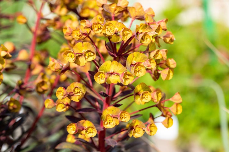 Euphorbia amygdaloides 'Blackbird', Wolfsmilch, dunkelgrün, ca. 11x11 cm Topf