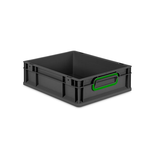 Eurobox NextGen Color, HxBxT 12x30x40cm, 11 Liter, Griffe grün geschlossen, Schwarz, Eurobehälter, Transportbox, Transportbehälter, Stapelbehälter